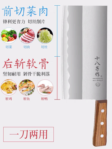 Stainless Steel Meat and Vegetable Cleaver Knife with Ergonomic and Sturdy Wooden Handle十八子作菜刀家用厨师专用刀免磨切菜刀饭店厨房斩切刀阳江十八子